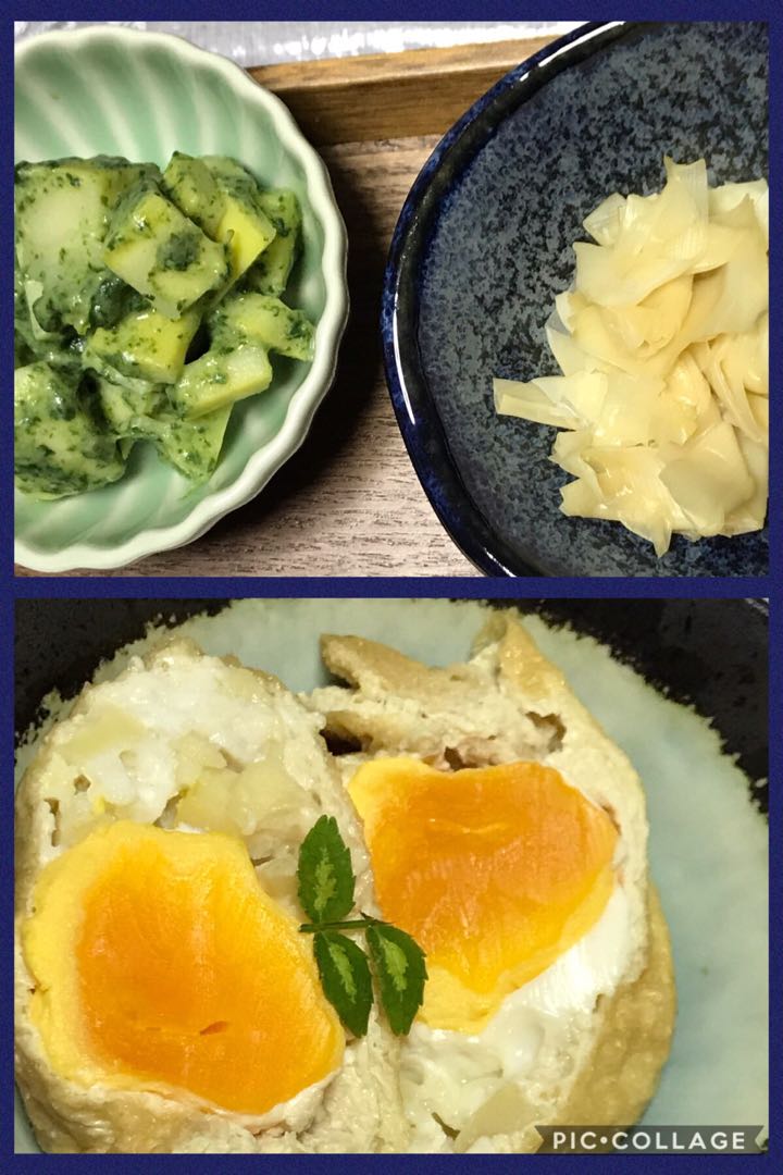 うす揚げの中に 筍と 卵を入れて お出汁で 煮てます
