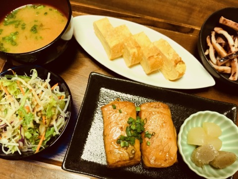 厚揚げに 豚肉を巻いて 生姜醤油で炒めたメインに