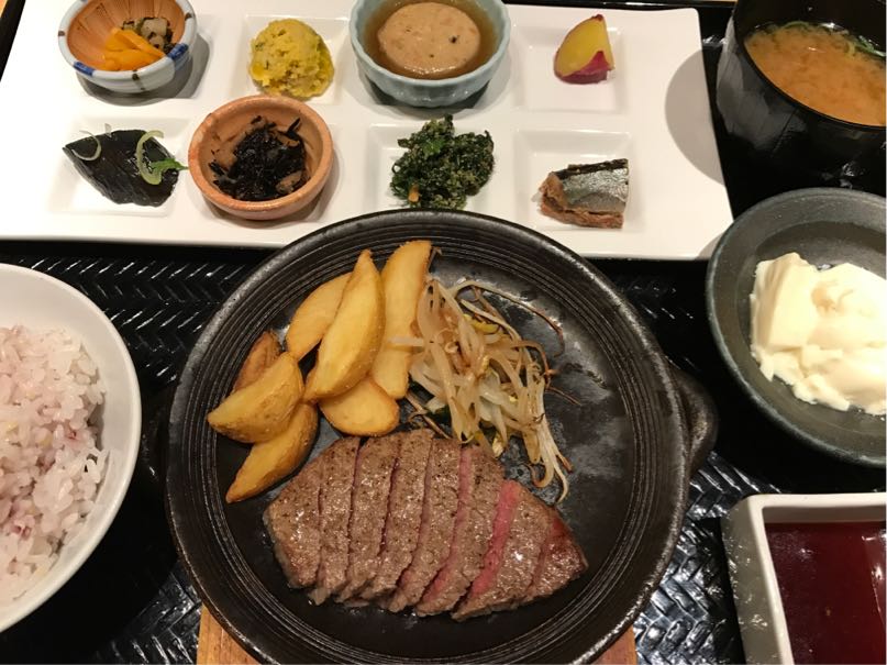 「黒毛和牛外ヒラステーキのおばんざいプレート」