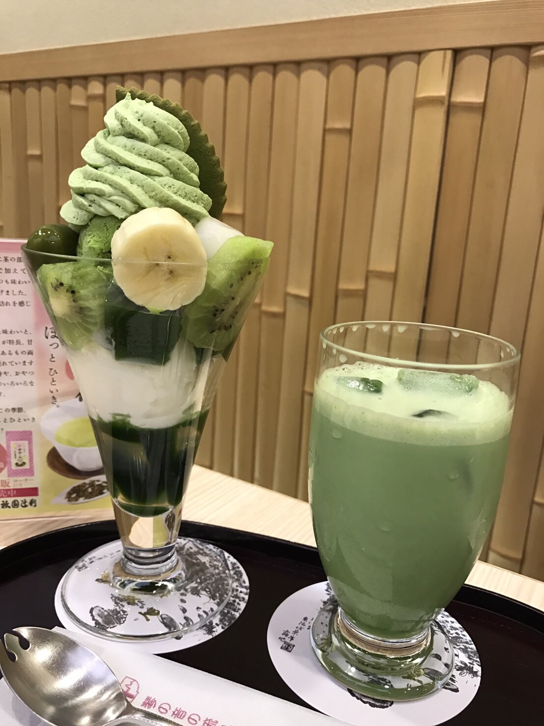 「ヨーグルトパフェ」と「抹茶ミルク」のセット
